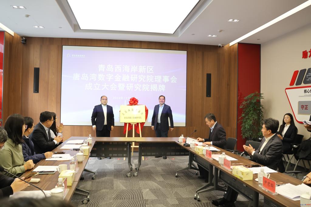 王延军、邱建国共同为研究院揭牌,标志着唐岛湾数字金融研究院的正式成立。