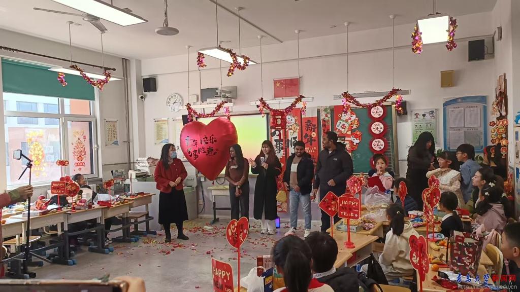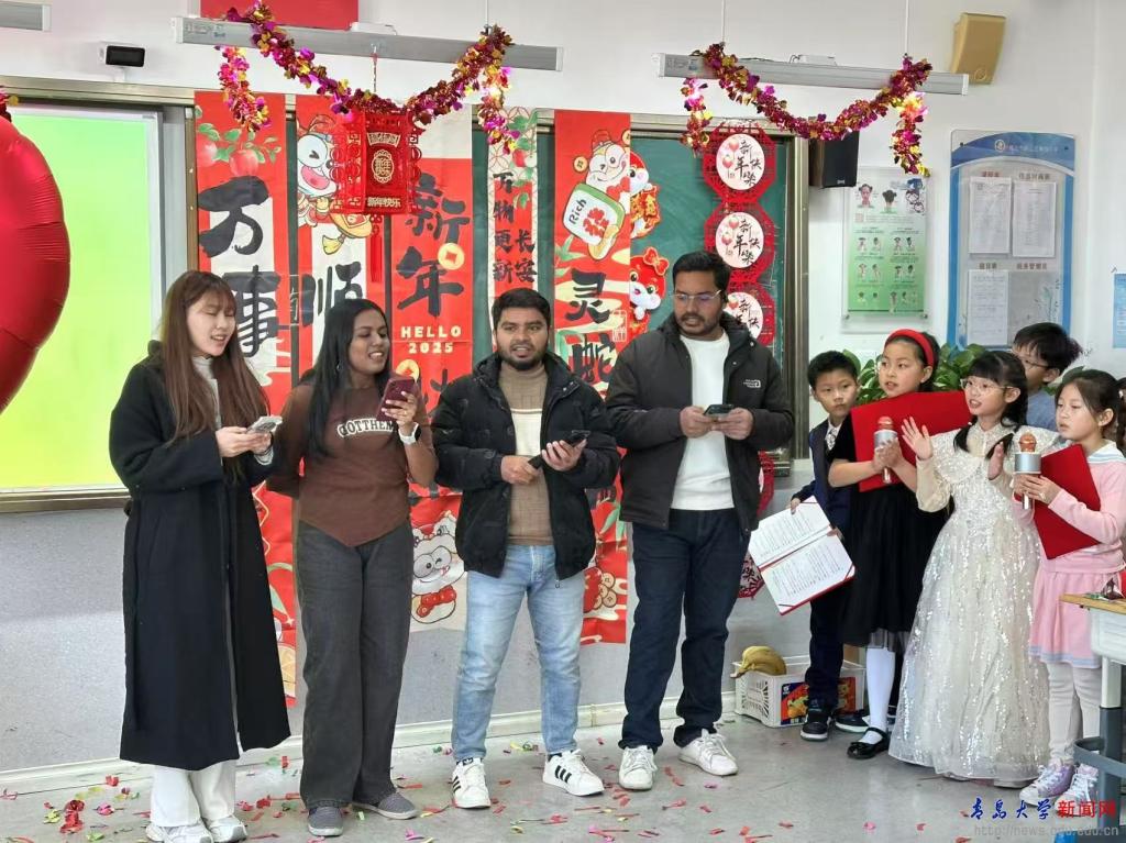 来自越南、印度、孟加拉国的4名留学生参加了青岛市中外人文交流实验学校--崂山区麦岛路小学三年级元旦文艺联欢暨国际理解日活动,除了观看节目展演以外,还与小学生们共同演唱迎新年英文歌曲,共同迎接新年的到来。