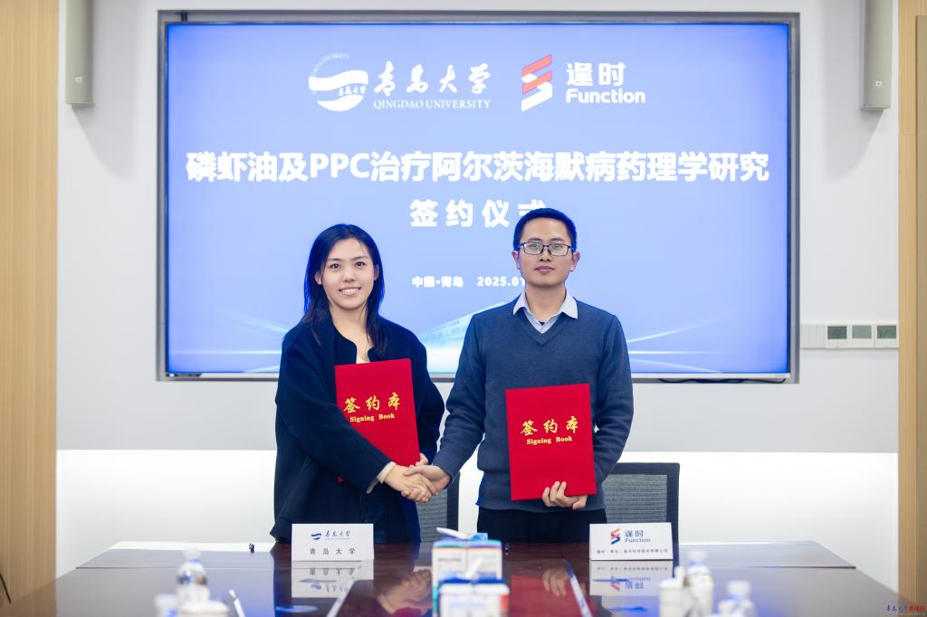 新闻网讯 1月16日,药学院与逢时(青岛)海洋科技股份有限公司在逢时海洋医药研创产业基地签署合作协议,将以产学研合作的方式,联合开展“磷虾油及高纯南极磷虾多烯磷脂酰胆碱治疗阿尔茨海默病的初步药理学评价”项目。