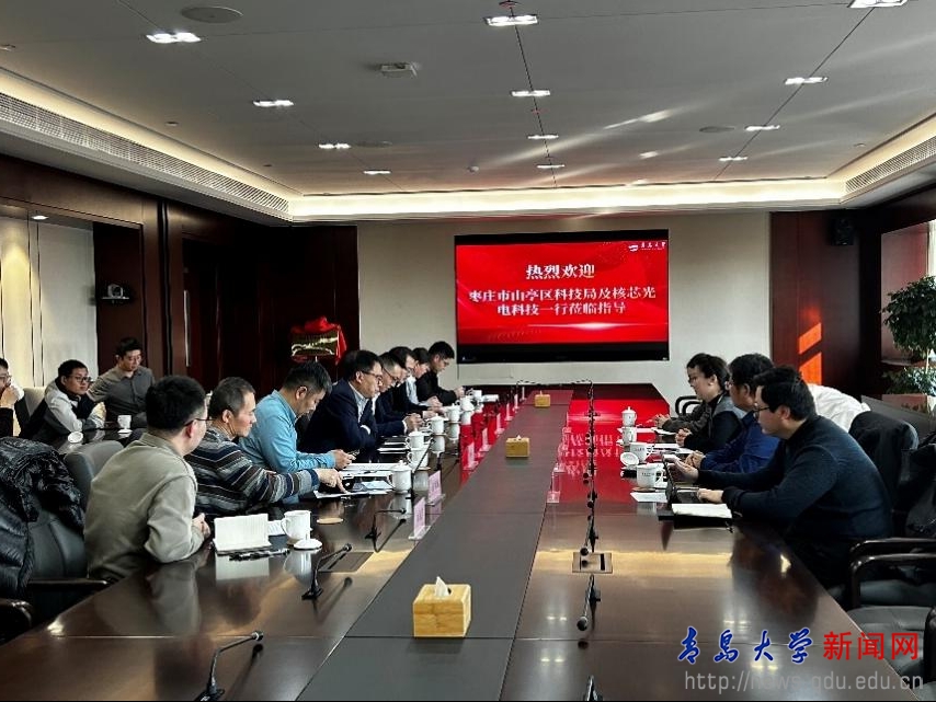 新闻网讯 2月26日下午,山东枣庄市山亭区科技局局长张颖、核芯光电科技(山东)有限公司总经理、中科院高能所曹学蕾研究员一行莅临伟德官网。材料科学与工程学院党委书记张奎勤、院长黄林军在会议中心致远厅会见了来访嘉宾并举行座谈,双方围绕进一步深化合作展开深入交流。座谈会由张奎勤主持,合作发展处副处长雷博、科研成果转化中心副主任曲绍阳、成果转化与专利管理办公室主任李龙彪参加会议。