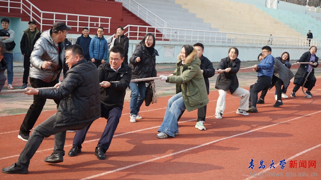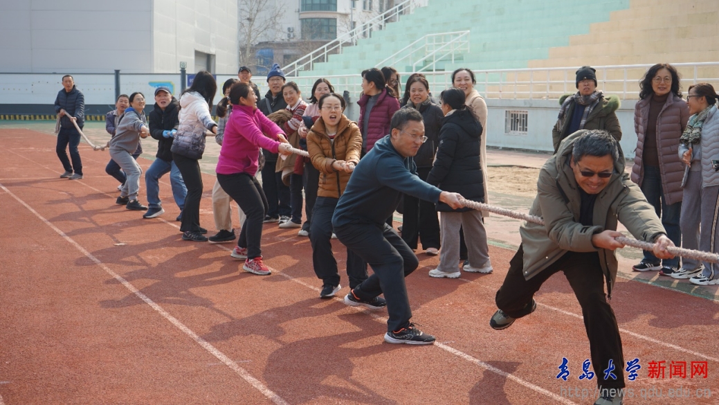 在一片欢声笑语中,一场承载着团结与坚韧精神的“巾帼力量 绳采飞扬”拔河比赛正式拉开帷幕。赛场上,女教师与男教师并肩而立,每一位队员都咬紧牙关、鼓足了全身的力气,全力以赴地投入比赛。