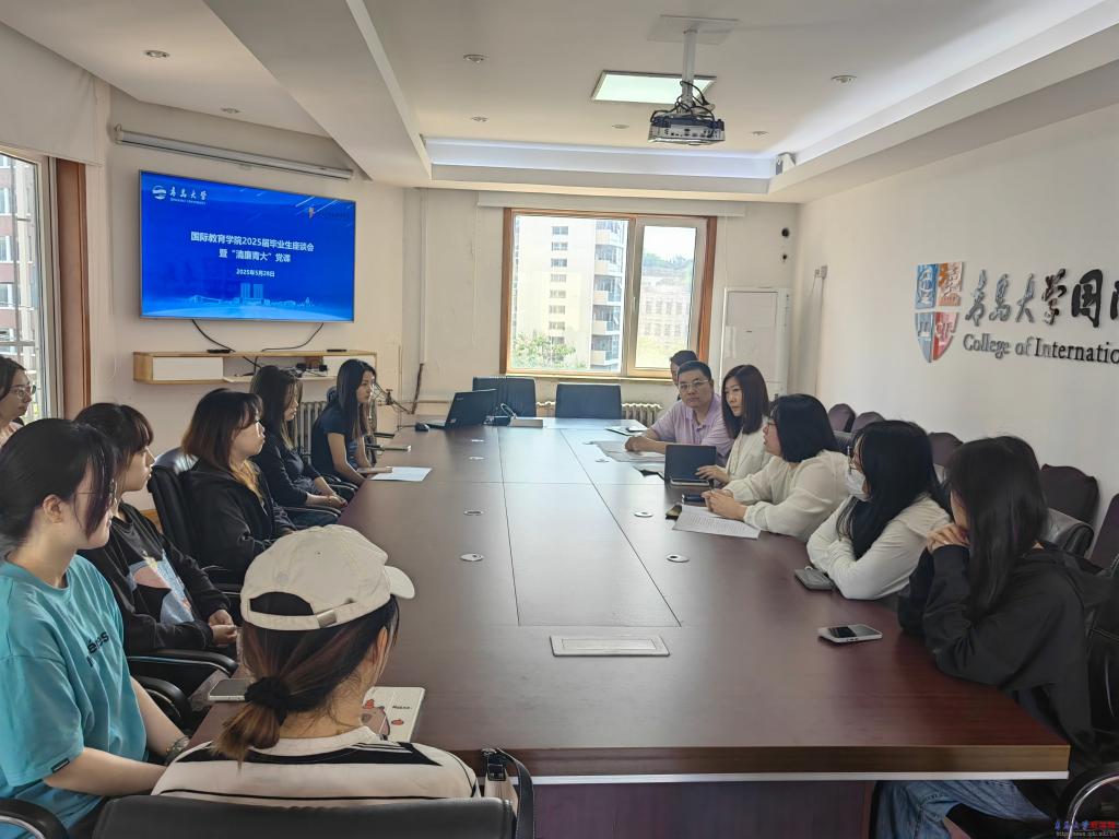 新闻网讯 5月28日,国际教育学院在敏行楼五楼会议室举办2025届毕业生座谈会暨“清廉青大”廉洁党课。大会由学院副院长孙莹主持,全体毕业生参加会议。