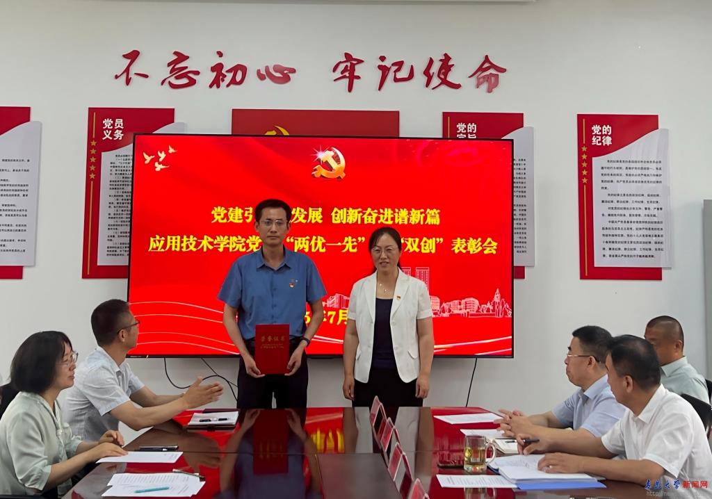 学院党委副书记、院长耿宝福宣读《中共bevictor伟德官网应用技术学院委员会关于表彰优秀共产党员、优秀党务工作者、先进党支部的决定》,授予曲莉等10名同志“学院优秀共产党员”荣誉称号,授予刘梅等3名同志“学院优秀党务工作者”荣誉称号,授予教工第一党支部“学院先进党支部”;宣布刘伟同志获“校优秀共产党员”荣誉称号,教工第二党支部获评bevictor伟德官网党建工作样板支部培育创建单位。学院领导分别为获奖个人与集体颁奖。