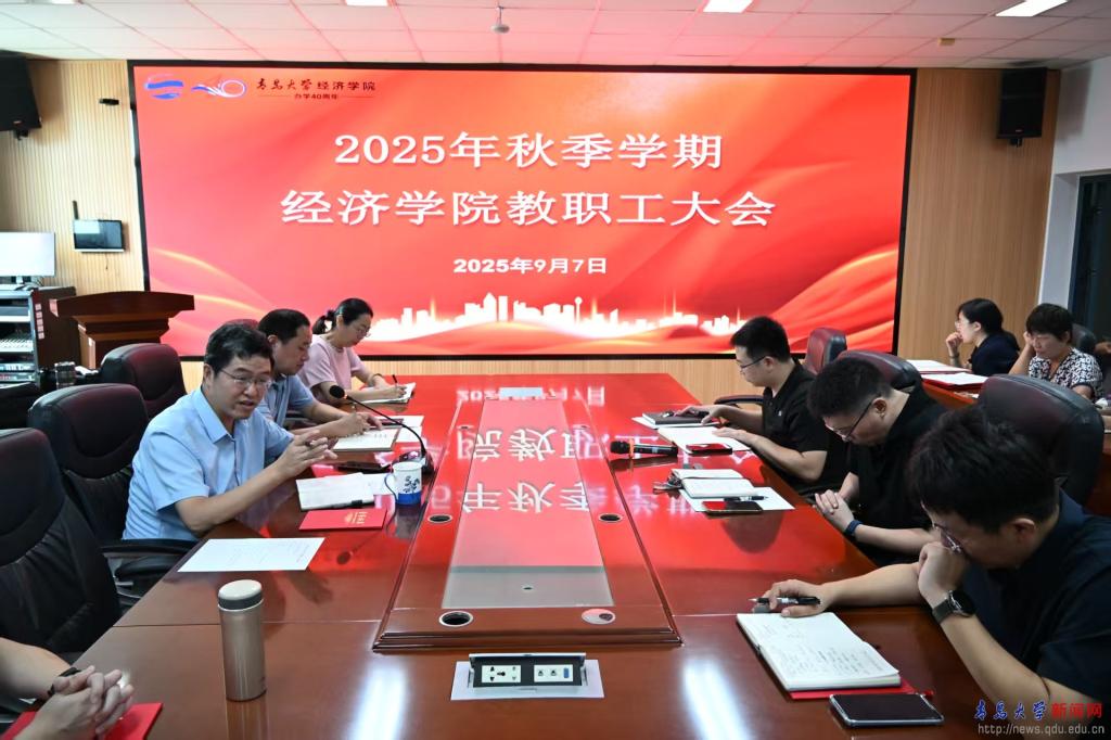 新闻网讯 9月7日上午,经济学院召开2025年秋季学期工作部署会,学院领导班子成员及全体教职工参加会议,会议由院党委书记邱建国主持。