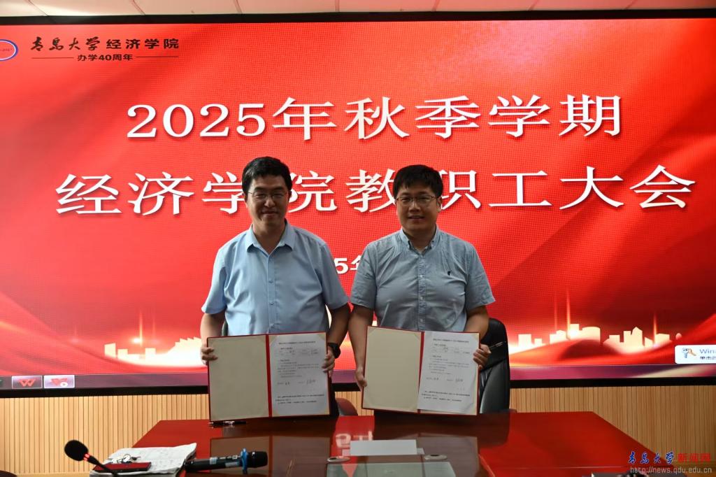会上,吕学梁院长代表学院与教职工代表签署了《2025年度经济学院教师工作任务书》。