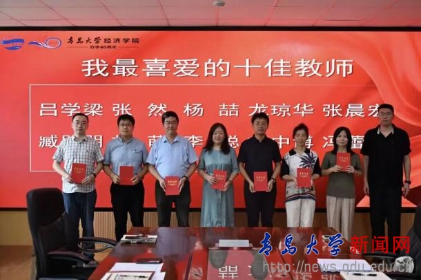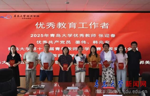 大会对经济学院"我最喜爱的十佳教师"、校级优秀教育工作者等荣誉称号获得者进行表彰。学院领导为获奖教师代表颁发证书。