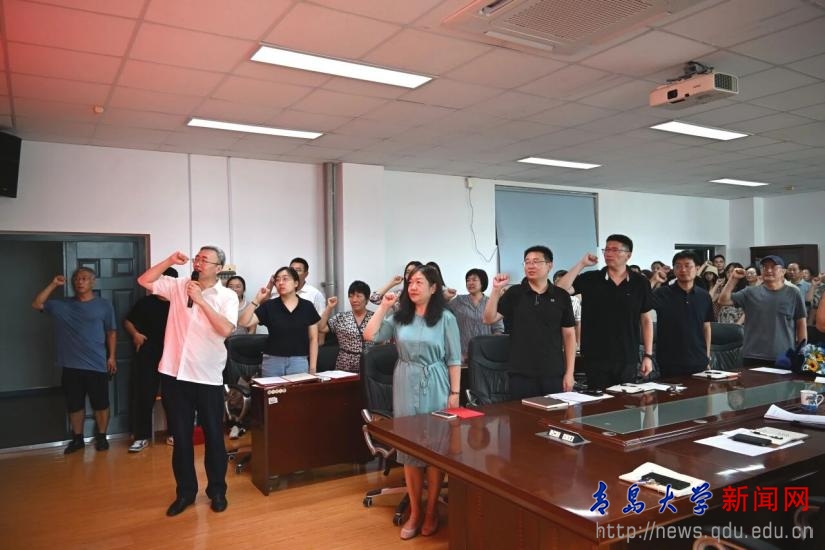 最后全体教师进行集体宣誓:我宣誓,忠诚人民教育事业,依法履行教师职责;为人师表,敬业爱生;严谨治学,修身立德;启智求真,恪守有教无类;因材施教,注重创新发展;为科教兴国,上下求索;为民族复兴,广育英才!