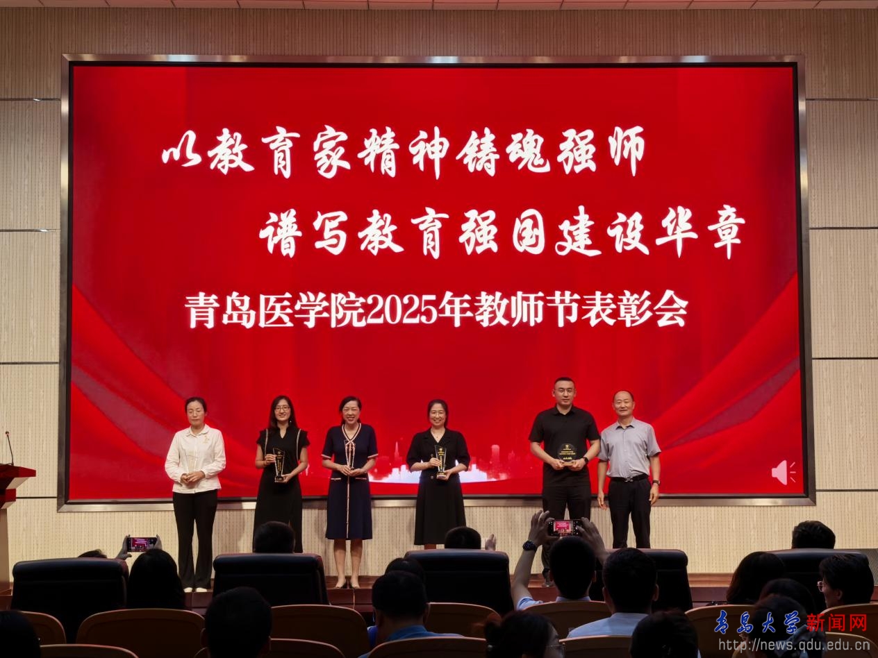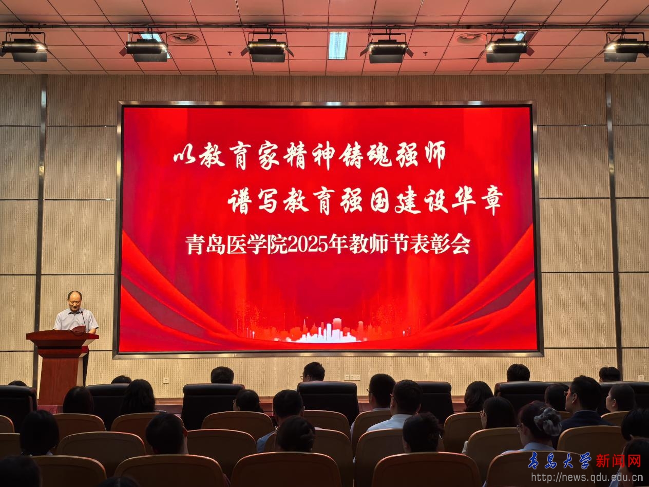 新闻网讯 9月12日下午,青岛医学院庆祝第41个教师节暨表彰会在浩园医学教育综合楼一楼报告厅举行。会议以“以教育家精神铸魂强师,谱写教育强国建设华章”为主题。青岛医学院党政领导,受表彰的先进集体和个人,各学院、研究院和驻青附属医院的主要负责人,新入职教师以及教职工代表200余人参会。会议由党委常务副书记王有全主持。