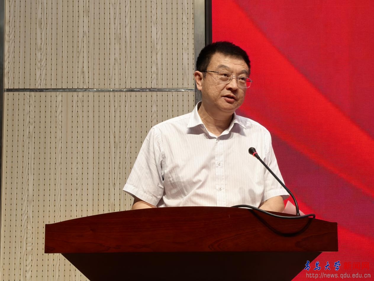 青岛医学院党委书记蒋光峰致辞。他代表学院党委向全院教职医务员工致以节日的问候、向受表彰的先进集体和个人表示祝贺。他指出,一年来,在学校党委的坚强领导下,全体教职医务员工凝心聚力、踔厉奋发,学院的人才培养、科学研究、学科建设、人才队伍建设、服务社会等方面不断取得新突破。他强调,全体教职医务员工要牢记为党育人、为国育才的初心使命,秉承青医的优良传统,弘扬教育家精神,奋力谱写青岛医学院高质量发展新篇章,为教育强国、健康中国建设作出新的更大贡献。同时,他向全体教职医务员工提出三点希望:一是弘扬教育家精神,争做“四有”好老师;二是坚守育人本职,培育健康中国栋梁;三是坚持顶天立地,勇攀医学科技高峰。