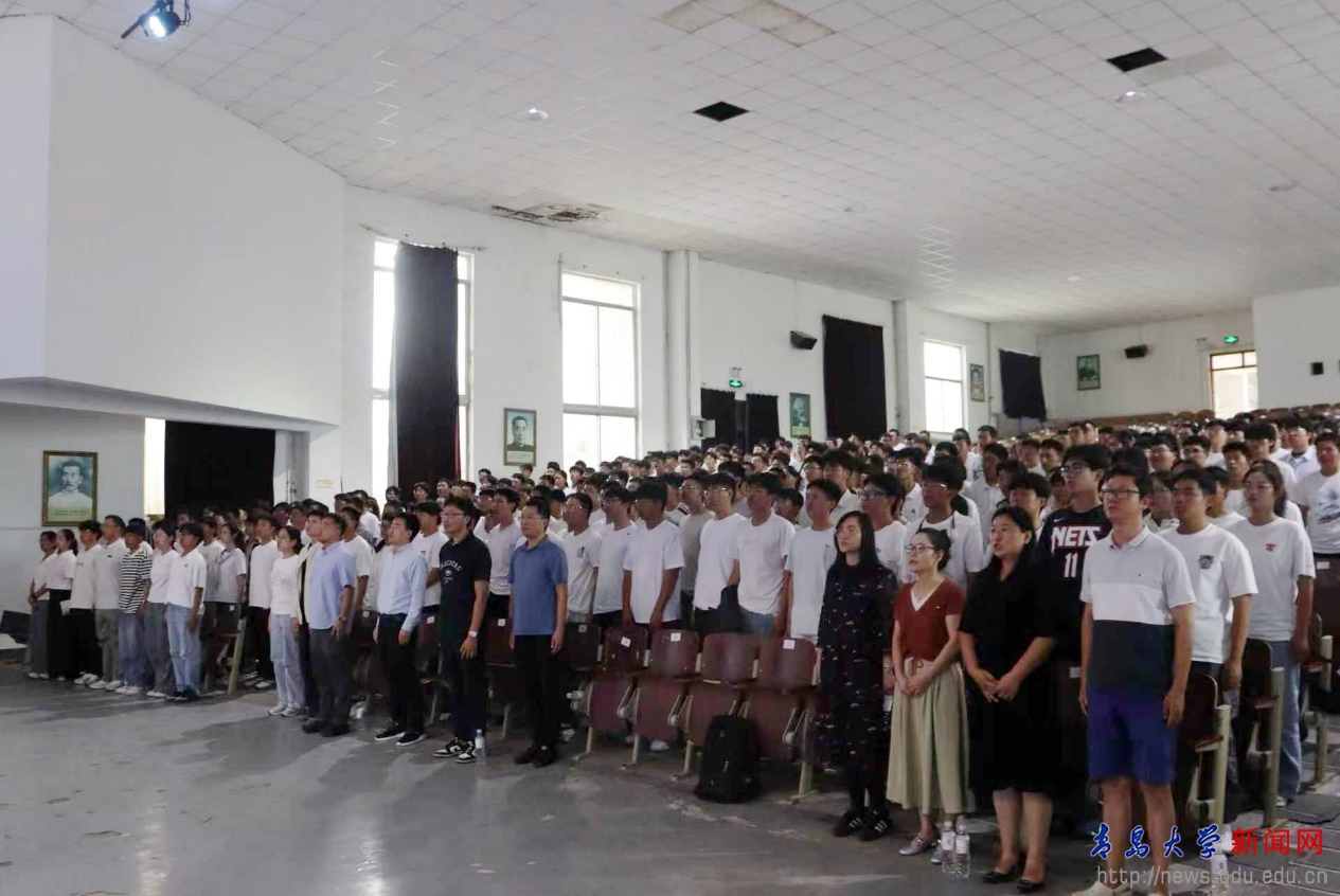 典礼开始前,院学生会带领新生齐声合唱《这世界那么多人》《我的未来式》《稻香》等曲目。悠扬旋律流淌间,点燃了现场氛围。