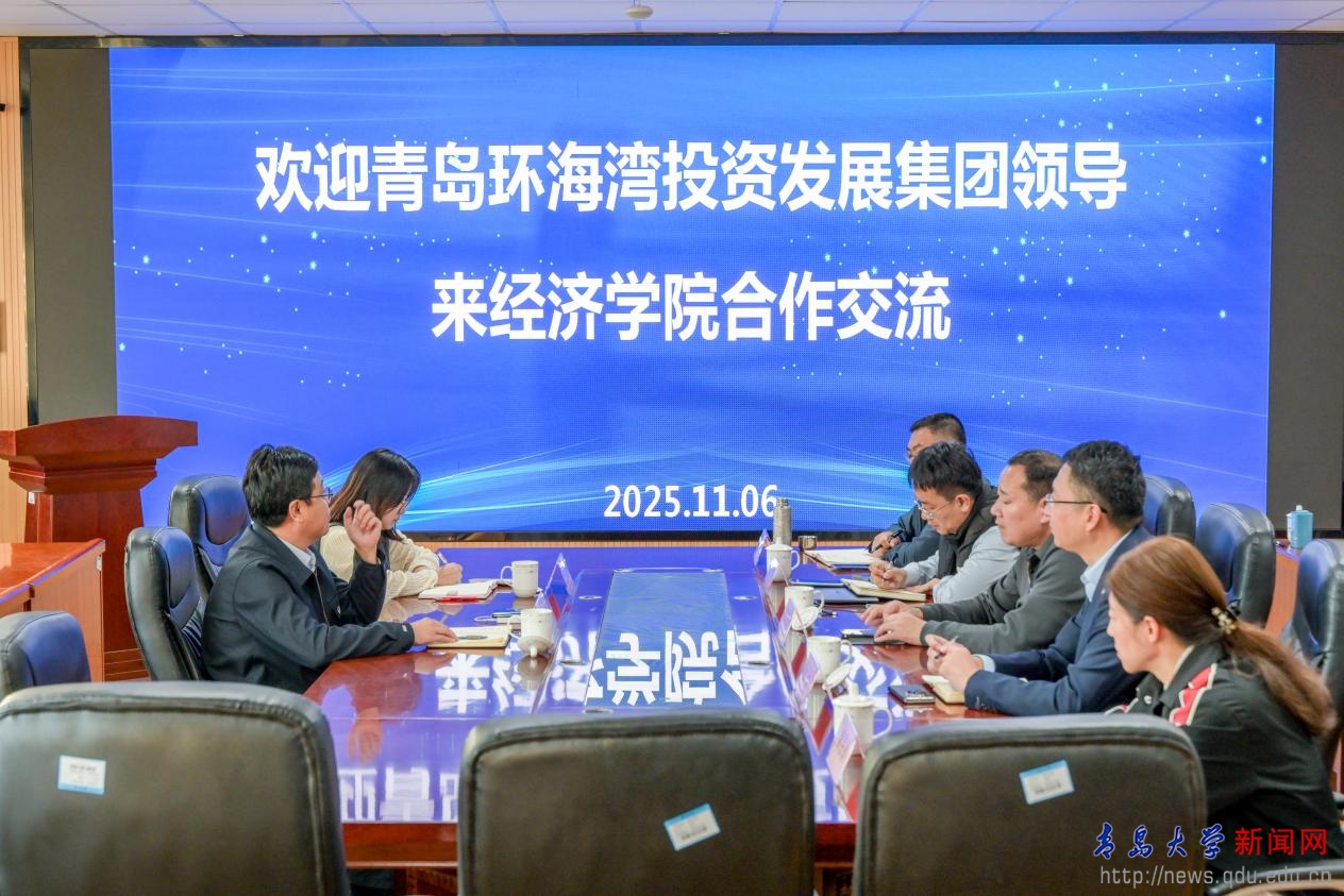 新闻网讯 11月6日,青岛环海湾投资发展集团有限公司、凯撒旅业有限公司党委书记、董事长迟永杰一行到访经济学院,双方围绕校企合作项目开展交流座谈。经济学院党委书记邱建国、产业技术研究院副院长谷正、经济学院副院长李聪、社会服务与培训中心主任张宗强、财政系臧朋朋老师出席座谈会。