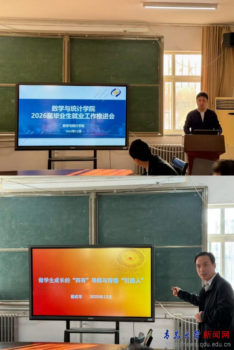辅导员杨艺就数学与统计学院毕业生就业情况进行了专题汇报。汇报详细分析了2025届毕业生整体就业情况、2026届毕业生就业形势以及面临的挑战。杨艺结合具体数据,分享了在提供精准指导、优化就业服务等方面的举措与思考,为班主任、辅导员更有针对性地开展毕业生就业服务与生涯规划指导提供了宝贵经验。