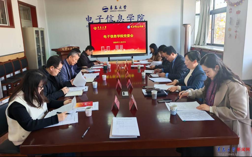 新闻网讯 近日,电子信息学院在诚思楼407会议室召开2025年第25次党委会和第20次党政联席会。校党委常委、副校长李建波列席旁听并进行指导。列席旁听工作组成员党委办公室、校长办公室副主任彭鑫、纪委案件管理室副主任杨美玲参加会议。