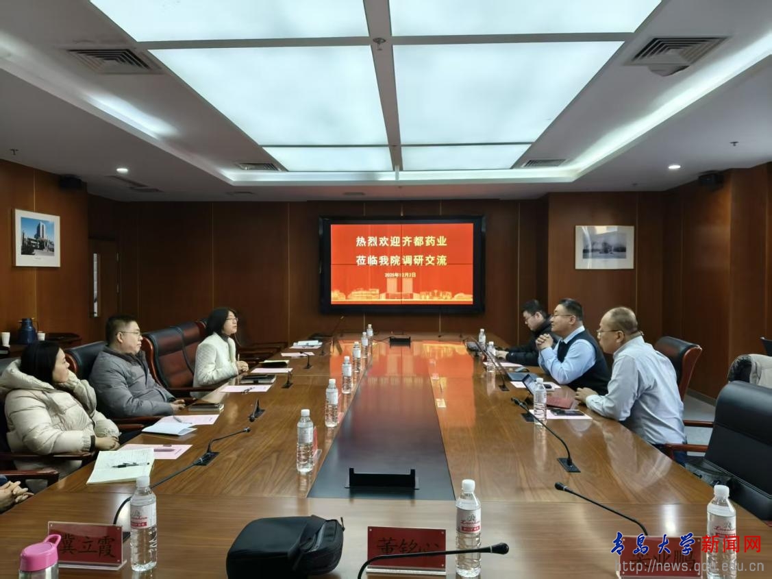 新闻网讯 12月2日下午,药学院与齐都药业校企合作交流座谈会在浩园医学教育综合楼A110会议室成功举行。齐都药业研究院执行院长任文刚、副院长兼注册医学与科技合作部部长张涛、副院长兼科技信息与项目管理部部长于康,bevictor伟德官网药学院院长孙勇、党委副书记雷舒涵等党政领导班子成员、各学系主任及教师代表参加。会议由孙勇主持。