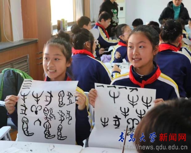 作为本次研学的核心环节,文传学院特别举办了“文脉漫校园,甲骨绘团扇”——甲骨文团扇制作体验活动。甲骨文实践团的成员们开展了甲骨文基础知识的讲解,教授甲骨文写法,让同学们既感受到了甲骨文的独特魅力,还充分体验到了团扇制作的乐趣。活动现场,北仲一小的同学们还带来了精彩的诗歌朗诵表演。