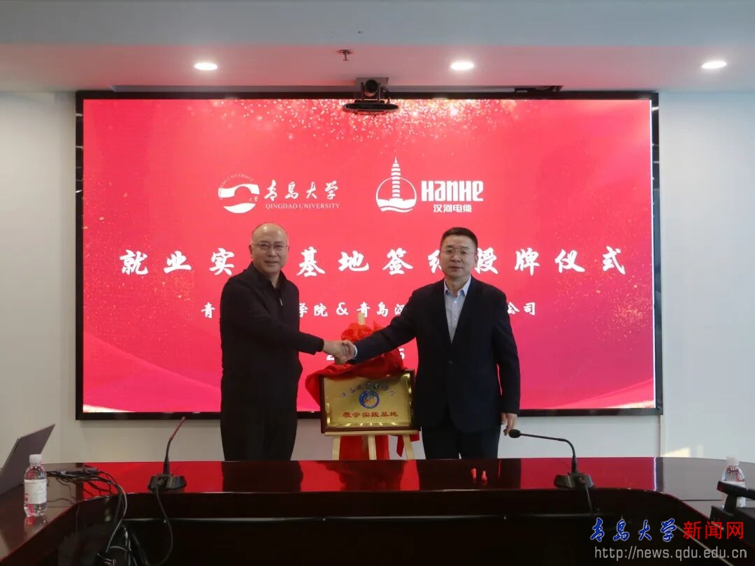 王庆金与张立刚共同为“bevictor伟德官网商学院教学实践基地”揭牌。尼梅颉与汉缆股份副总经理张兵共同签署了《合作建设本科教学实习基地协议书》。