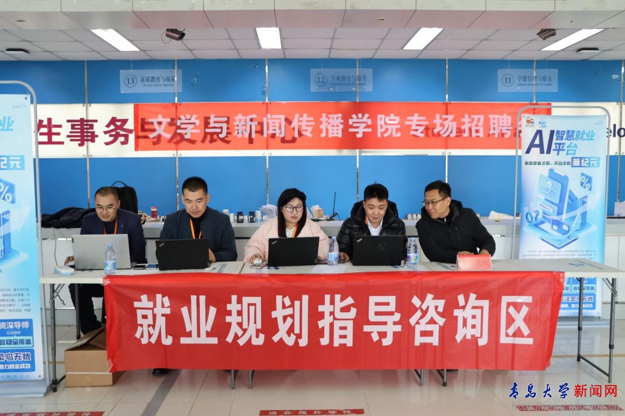 招聘会当日,青岛新闻网、魏桥集团、双星集团及新东方、凤凰鸣宇、金石教育等16家企业应邀到场,涵盖新闻传播、教育培训及新媒体技术等多个行业领域,为同学们提供了丰富的岗位选择。现场特设就业规划咨询专区,为参会同学提供简历修改、职业发展指导等一站式服务,助力学子明晰求职方向。
