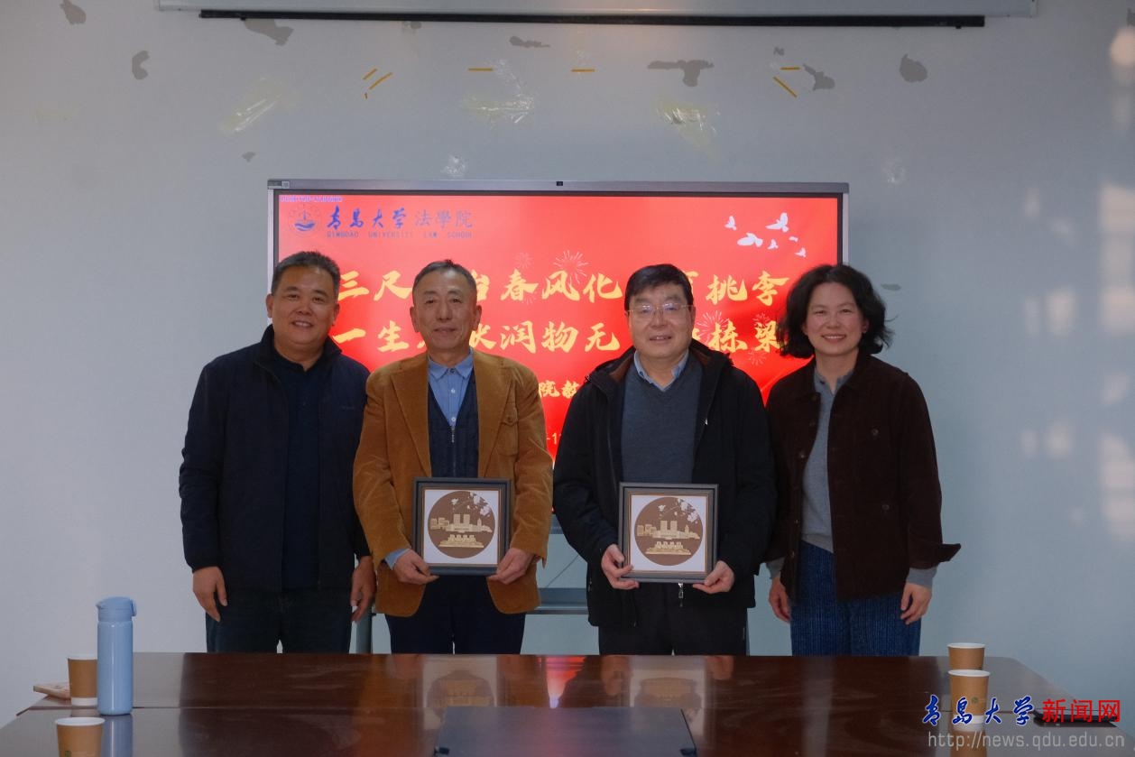 新闻网讯 12月30日,法学院在学院会议室为谭庆德、杨晓林老师举办荣休仪式,院党委书记李建新、党委副书记庞在辛、副院长董桂武以及师生代表参加活动。