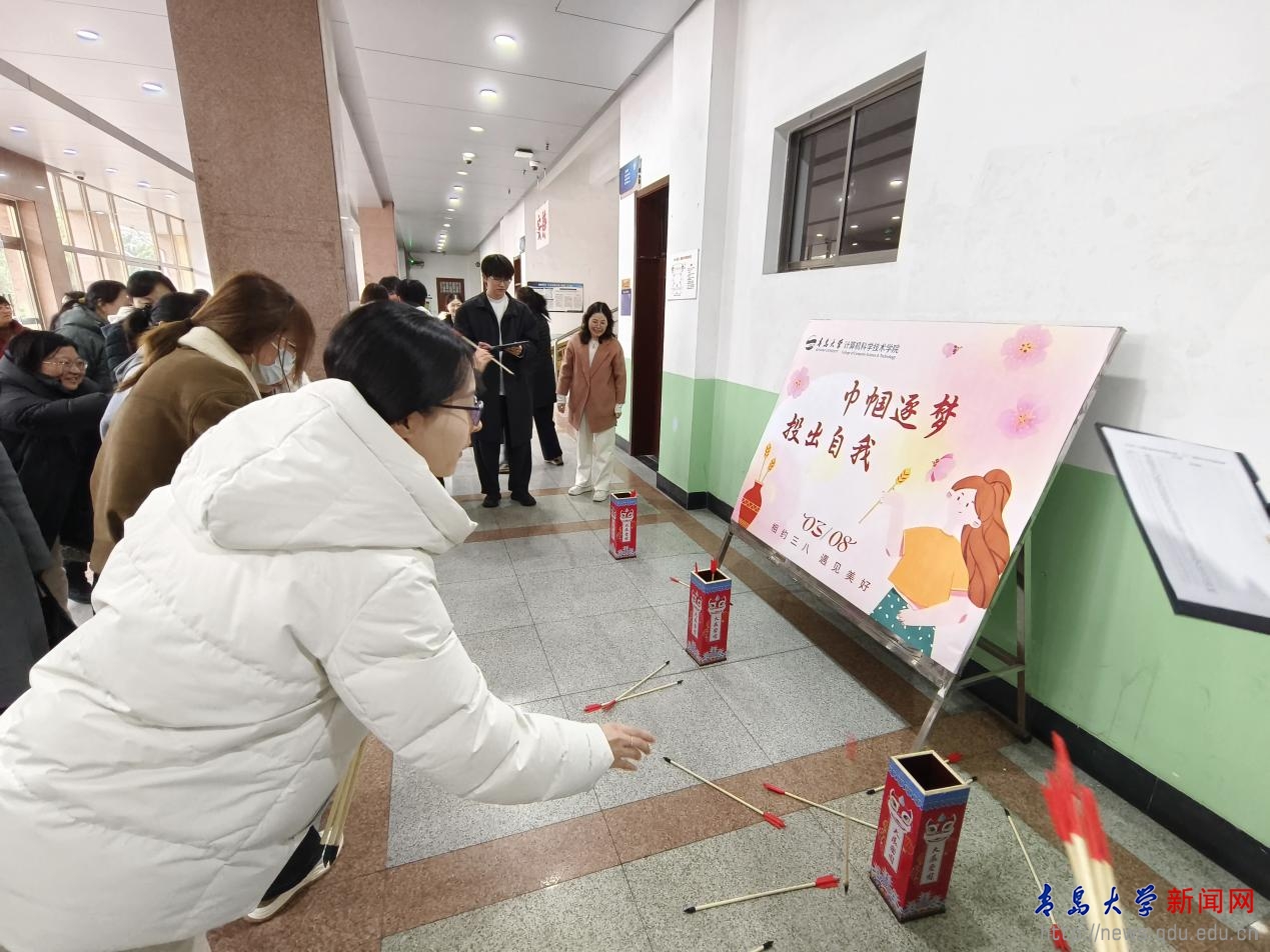 活动设置投壶互动环节,为女教职工搭建放松身心、交流互动的平台。现场氛围浓厚,女教职工踊跃参与、积极互动,抬手投壶间尽显活力,在欢声笑语中缓解工作压力,洋溢着节日喜悦。