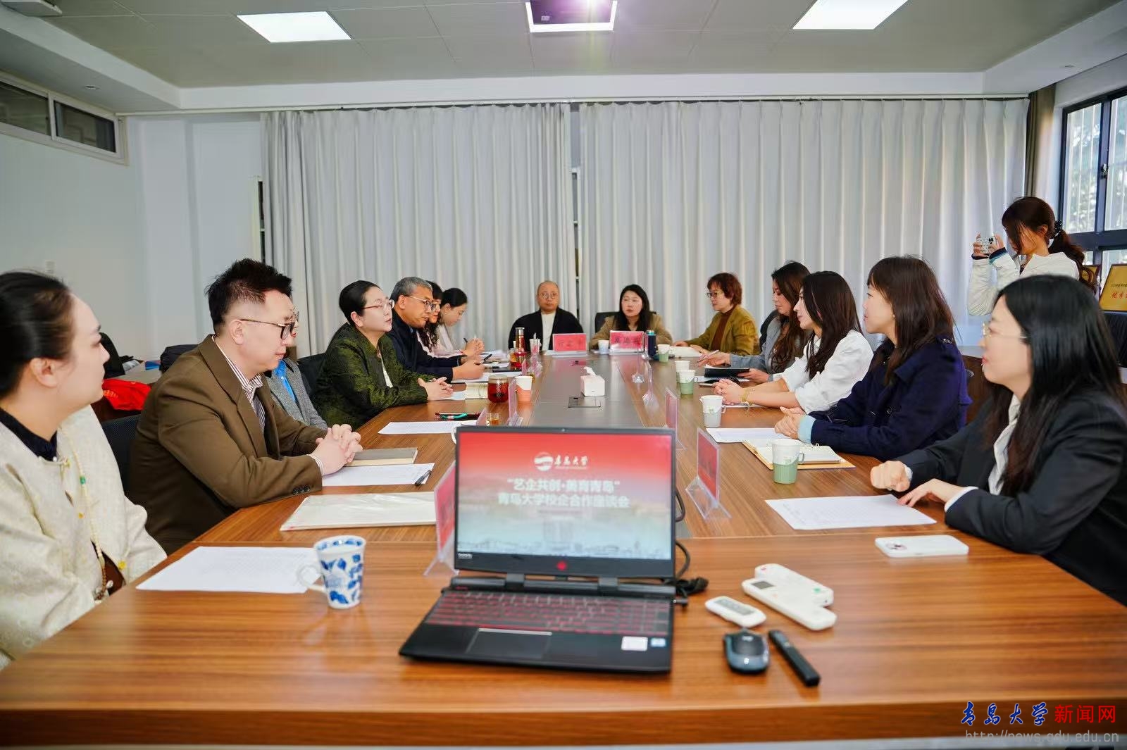 座谈会上,艺术学院副院长董博超、黄钺分别详细汇报了音乐和美术学科专业在品牌建设、产教融合、服务地方等方面的工作和成果。王洁影详细介绍了JINDING集团的商业版图和业务板块。