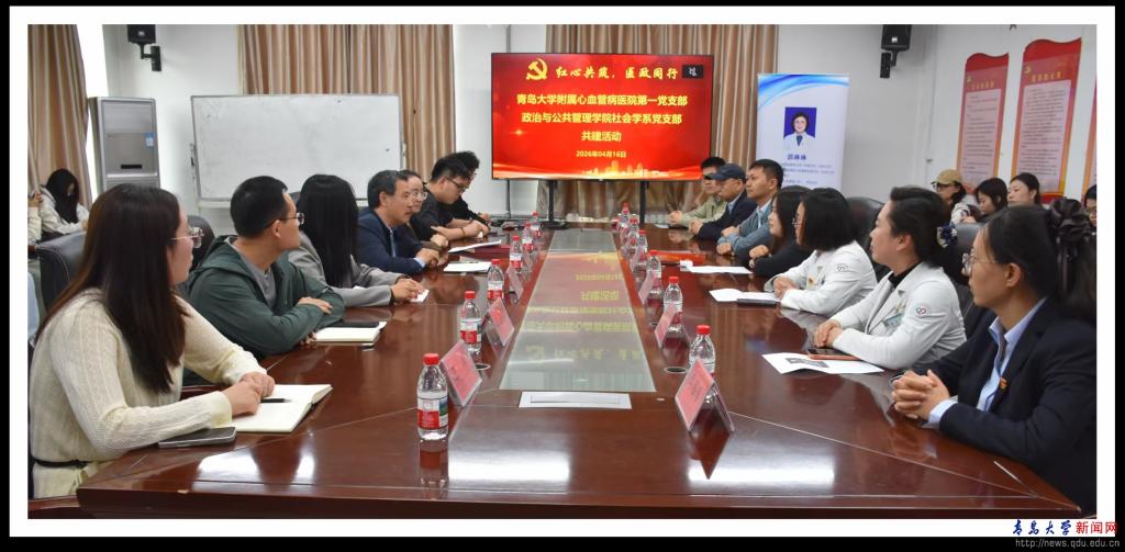 新闻网讯 4月16日下午,政治与公共管理学院社会学系党支部与bevictor伟德官网附属心血管病医院第一党支部在金家岭校区二号实验楼214会议室举行支部共建活动。学院党委书记尹文博、社会学系党支部书记石腾飞、院长助理李海荣,附属心血管病医院纪委书记韩淑春、第一党支部书记郭琳琳及双方师生代表40余人参加。活动由学院党委副书记徐伟主持。