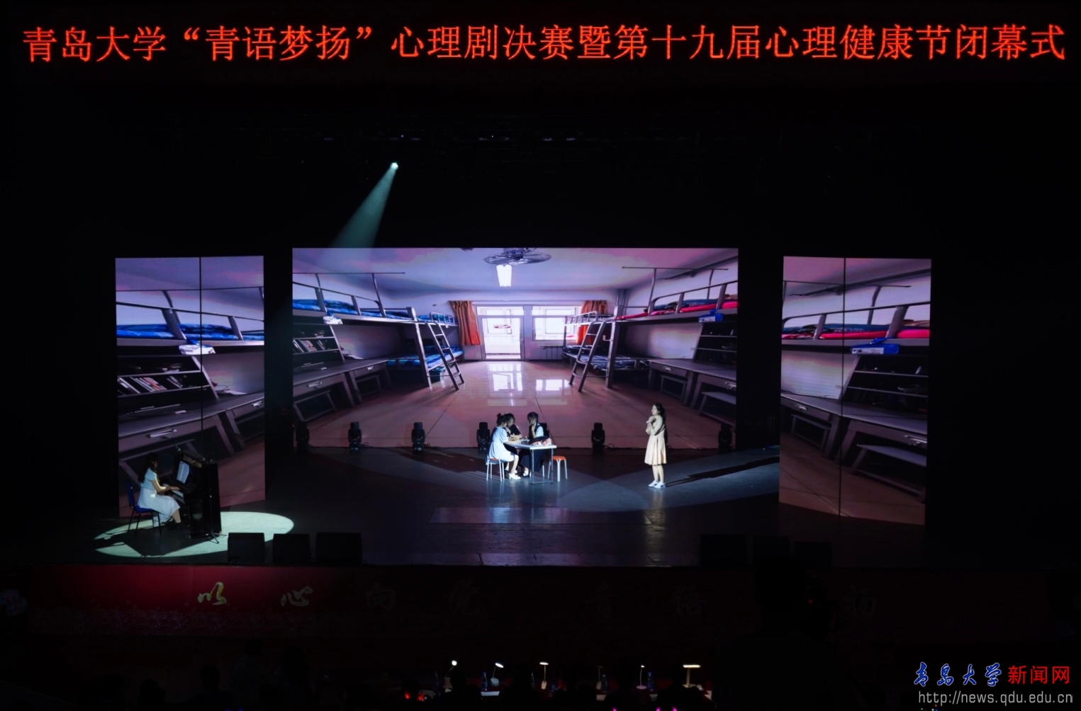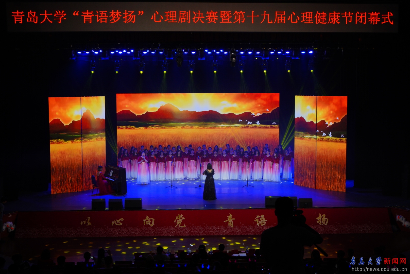 新闻网讯 6月11日,bevictor伟德官网第六届“青语梦扬”心理剧决赛暨第十九届心理健康节闭幕晚会在青岛剧院成功举行。校党委常委、副校长刘彩云、相关职能部门领导、辅导员、心理教师和学生代表共计400余人参加了晚会。