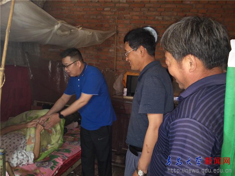古龙港村贫困老党员王连友,患肺气肿病,多年无法下地劳动,家里又没有其他经济来源,生活贫困,校友会一行人到其家中,亲切询问老人的身体状况、经济来源、子女赡养等情况,了解生活中遇到的困难。第一书记还给老党员家人介绍村里目前的扶贫政策,鼓励他们勇敢面对困难,快乐生活。