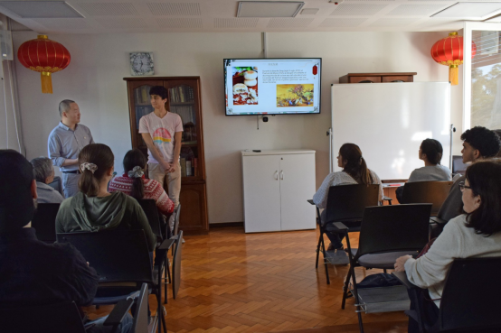 活动中,公派教师王烈陈从文化习俗、神话传说等几个方面介绍了中秋节的相关文化知识,孔院的学员Juan和Noam分别朗诵了与中秋相关的古诗词《望月怀远》和《水调歌头·明月几时有》。王烈陈介绍了中秋文化和中国航天的浪漫渊源,并现场带领大家学唱了《但愿人长久》。