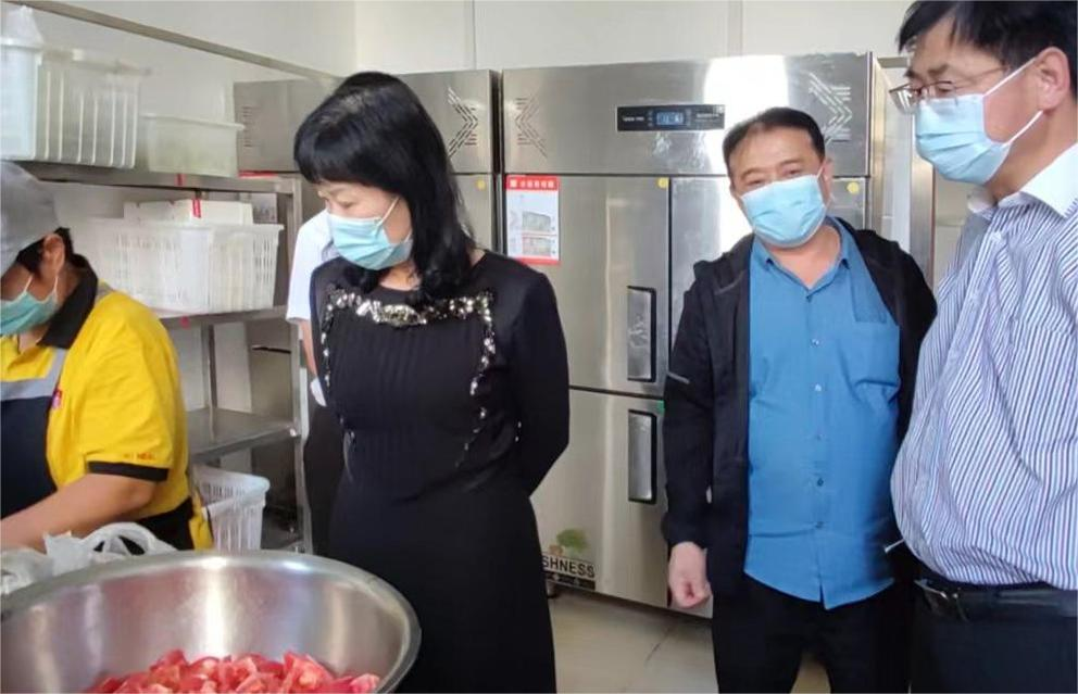 在松山、浩园等餐厅的现场,刘彩云详细查看了食堂库房食品原料的储存情况,冰箱内禽肉、水产品、半成品等各类食品的分类存放;对食堂洗碗消毒设备的使用、公共餐具用具的洗刷和消毒流程等进行详细查看和询问;对食堂食品出售及工作现场的卫生管理、厨房清洁与消毒等进行仔细检查,对食品安全管理、食堂各类记录、人员管理、防疫管理等进行检查和督导。