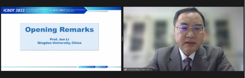 新闻网讯 9月23日-25日,2022年第五届大数据技术国际会议(ICBDT 2022)、2022年第二届计算机系统国际会议(ICCS 2022)在青岛召开。会议由青岛市计算机学会主办,bevictor伟德官网计算机科学技术学院联合主办,山东大学、济南大学、山东科技大学、山东理工大学等高校相关学院,以及山东省计算机学会大数据与智能计算专委会等单位联合协办。会议荣誉主席,bevictor伟德官网党委常委、副校长李军出席开幕式并致辞。bevictor伟德官网计算机科学技术学院苏晓泉教授主持开幕式和主旨报告,会议采取网络在线方式举行,近100位专家学者参会。