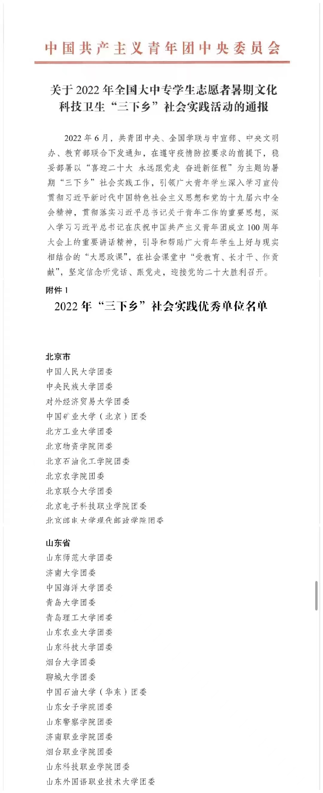 bevictor伟德官网团委获2022年全国暑期“三下乡”社会实践优秀单位