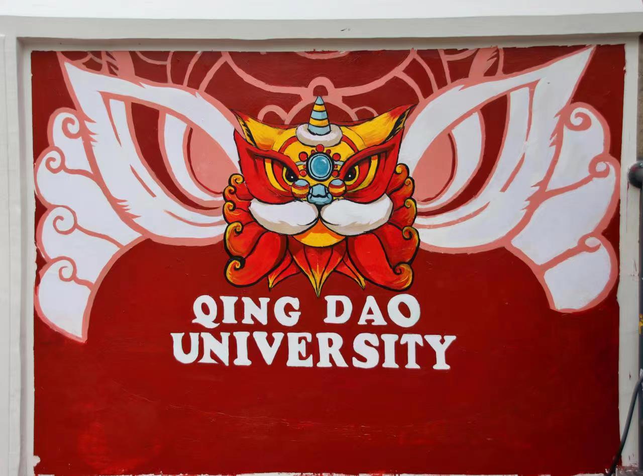 此次活动共绘制十五幅作品,青大青年高效有序、有条不紊地开展墙绘创作,构图、起形、调色、上色、精修,反复打磨每一面墙绘、认真勾勒每一个细节,让素净的外墙变得生动鲜活。