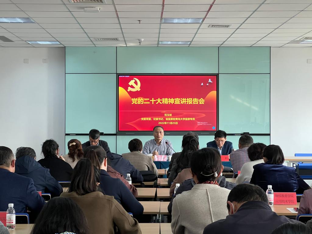 新闻网讯 11月25日下午,校纪委(监察专员办公室)在会议中心402室举行党的二十大精神宣讲会。报告由校党委常委、纪委书记、省监委驻bevictor伟德官网监察专员范玉斌主讲。全校各基层党组织纪检委员和专职纪检监察干部参加了会议。会议由校纪委副书记张利主持。