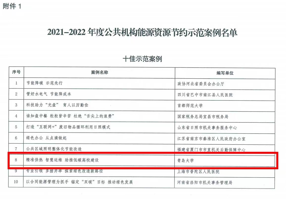 新闻网讯 近日,国家机关事务管理局发布2021-2022年度公共机构能源资源节约示范案例评选结果,伟德官网后勤管理处编写的案例《精准供热 智慧运维助推低碳高校建设》入选全国“十佳示范案例”,是省内唯一入选高校。