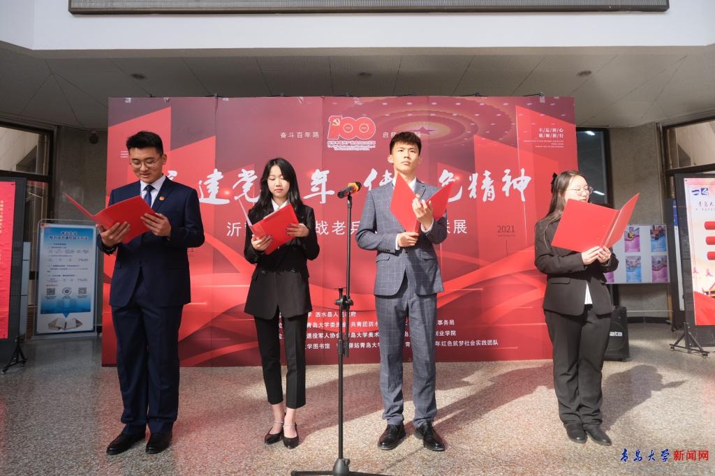 新闻网讯 为了庆祝中国共产党成立100周年,推动青年学生党史学习教育,激励青大青年强信念、跟党走,校团委联合共青团泗水县委5月17日下午在图书馆大厅开展了沂蒙老区百位参战老兵漫画校地联展活动。