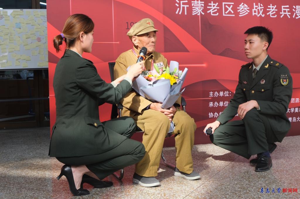 曾经参加过抗美援朝战争、92岁的王传柱老人来到活动现场,与青年学生对话红色记忆和精神。泗水县党委常委、统战部长张乙彬,校党委常委、副校长刘彩云参加开幕式。开幕式由校团委书记马林刚主持。