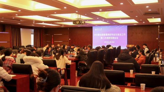 新闻网讯 2月28日下午,教育部高校学生司会同学生服务与素质发展中心召开2023届全国普通高校毕业生就业工作第二次调度视频会议。伟德官网各学院党委副书记和全体毕业生辅导员在办公楼407会议室收听收看会议,学生工作处处长王春出席并在视频会后讲话。