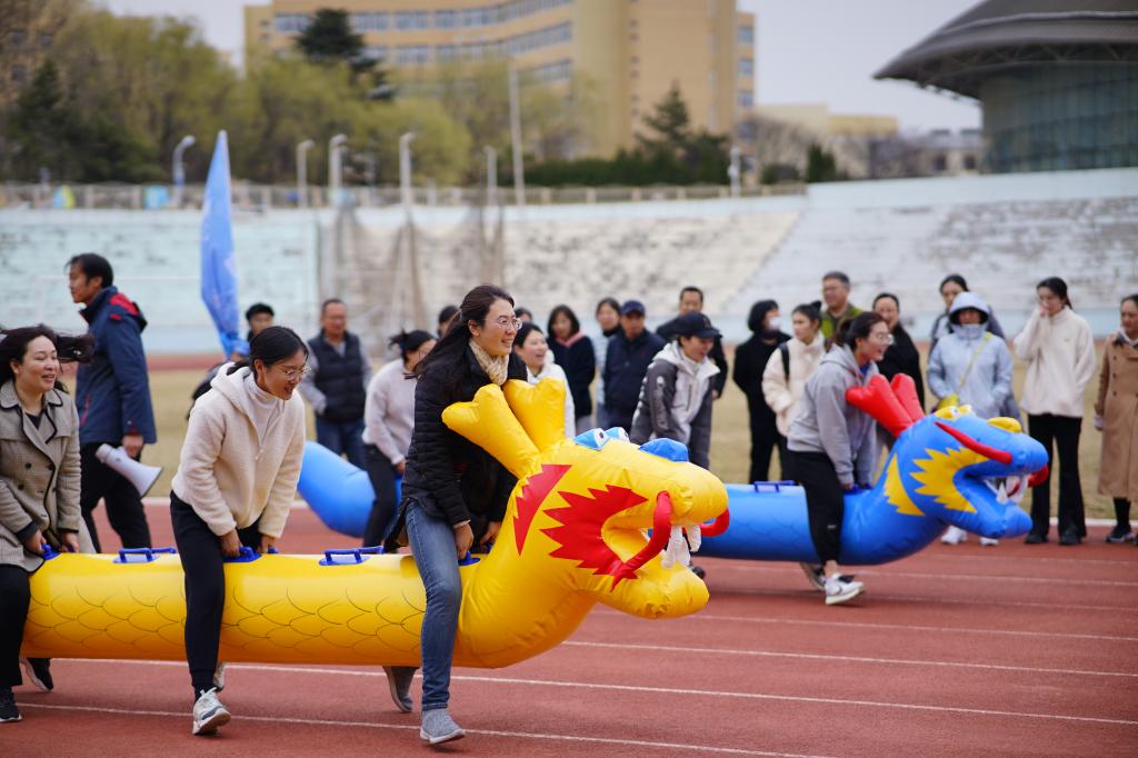 本次比赛分为骑长龙、跳绳、定点投篮和垫排球四个集体项目。教职工们在比赛场上热情高涨、奋勇拼搏、团结协作,展现出良好的竞技状态和精神风貌。