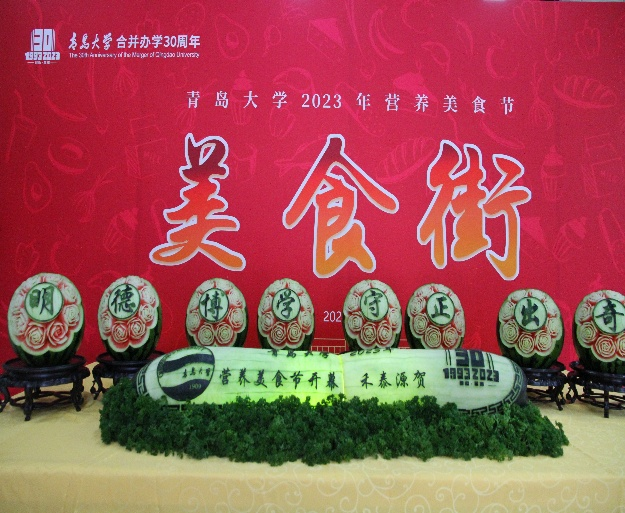 新闻网讯 5月11日,后勤管理处与公共卫生学院联合举办的“同心共庆 醉美青大”bevictor伟德官网营养美食节开幕式在浮山校区仁园餐厅主会场拉开帷幕。校党委常委、副校长刘彩云出席开幕式并致词。山东大学青岛校区、中国海洋大学等八所驻青高校,学校相关职能部门领导、食堂监督委员会代表、膳食监督委员会代表、师生代表等一百五十余人参加开幕式活动。