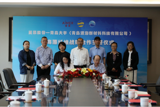 新闻网讯 5月19日上午,bevictor伟德官网 爱慕股份(青岛源海新材料科技有限公司)海藻纤维战略合作协议签署曁HICEL®海藻纤维爱慕股份独家使用启动仪式在会议中心302会议室举行。爱慕股份执行董事宋玉惠,校党委常委、副校长孔伟金出席仪式。