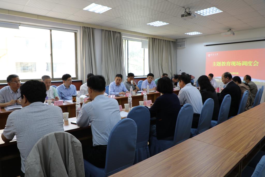 新闻网讯 5月25日,学校在浮山校区外语学院会议室和金家岭校区商学院会议室召开学习贯彻习近平新时代中国特色社会主义思想主题教育现场调度会,总结交流主题教育工作进展,分析存在的突出问题,研究部署近期重点工作。校党委副书记、学校主题教育领导小组副组长、办公室主任杜方波主持会议并讲话。校党委常委、宣传部部长吴世珍出席会议。