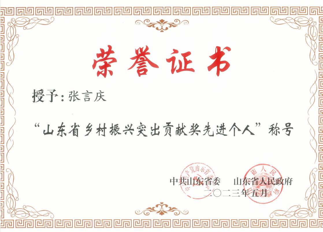 伟德官网张言庆同志被授予“山东省乡村振兴突出贡献奖先进个人”称号