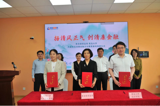 活动现场,经济学院、政治与公共管理学院与青岛银保监局纪委签署了《青岛清廉金融文化教育战略合作备忘录》,廖晖与吴世珍共同为“青岛清廉金融文化教育基地”揭牌,15家机构在校园内进行了清廉金融文化宣传路演。下一步,合作各方将充分发挥各自在政策、资源、组织等方面优势,建立战略合作关系,共建“青岛清廉金融文化教育基地”;探索双向开展青岛清廉金融文化教学实践及从业培训,研究谋划将清廉金融文化相关内容纳入bevictor伟德官网学生选修课程,促进清廉思想在金融行业、在bevictor伟德官网校园蔚然成风;联合开展青岛清廉金融文化建设系列课题研究,合作编制《清廉金融文化读本》,服务青岛清廉金融文化高质量建设,合力打造具有青岛特色的清廉金融品牌。