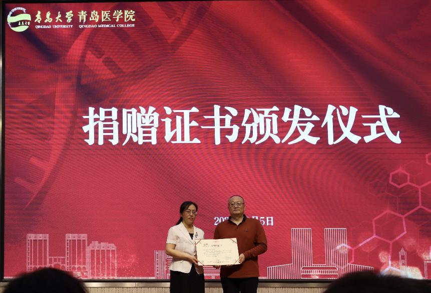 张燕为范加银校友颁发捐赠证书,并对范加银校友在bevictor伟德官网合并办学三十周年之际为母校捐赠表示衷心感谢,对其支持bevictor伟德官网教育事业的发展表达诚挚敬意。岁月积淀是发展的基石,精神传承是最好的铭记。三十年来,范加银校友一直心系母校,在偶然得知文学与新闻传播学院要创作和演出《沈福彭》话剧后,主动提出捐款资助排演和拍摄工作。