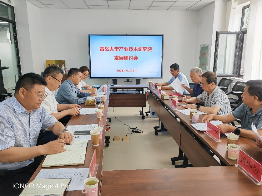 执行院长崔言民汇报了产研院职能工作机制,阐述了产研院从概念设计到启用运营的具体建设情况,结合发展目标、功能定位、建设思路等内容介绍了产研院基本情况;鲍文胜介绍了胶州分院筹备建设相关情况。与会人员围绕产研院未来建设规划和发展进行了深入交流。