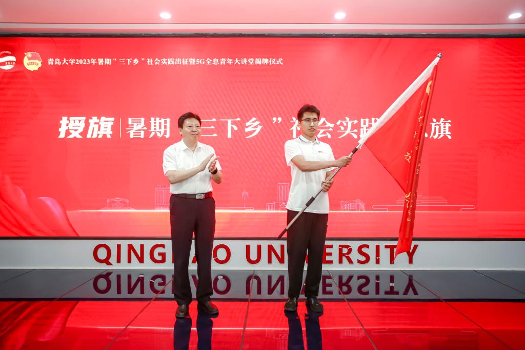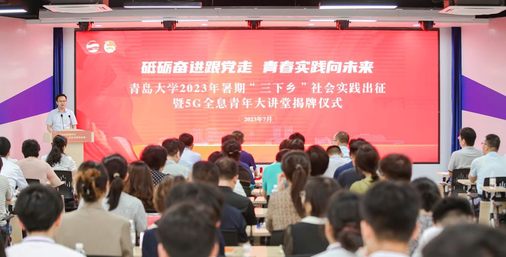 新闻网讯 为深入学习贯彻习近平新时代中国特色社会主义思想和党的二十大精神,学习习近平总书记在同团中央新一届领导班子成员集体谈话时的重要讲话精神,牢牢把握‘学思想、强党性、重实践、建新功’的总要求,7月4日下午,伟德官网2023年暑期“三下乡”社会实践出征暨5G全息青年大讲堂揭牌仪式在大学生科创文化中心5G全息青年大讲堂举行。校党委常委、副校长陈涛,中国联通山东分公司政企BG副总裁宋元庆出席仪式并讲话。中国联通青岛分公司、崂山分公司领导,学校各相关部门负责同志,各学院(部)分管书记、分管院长和团委全体工作人员,暑期实践团队的指导教师和学生代表参加了仪式。仪式由校团委书记解文斌主持。