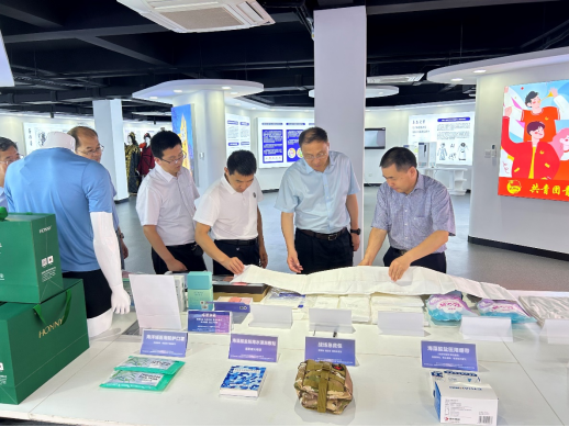 督导组领导一行实地察看了概念验证中心、项目成果综合展区、沉浸式体验中心、洽谈区等建设情况,观摩了人体姿态智能感知、透明触摸屏和海洋绒医用系列制品等实物展示,参与了部分实物展品的现场互动交流。