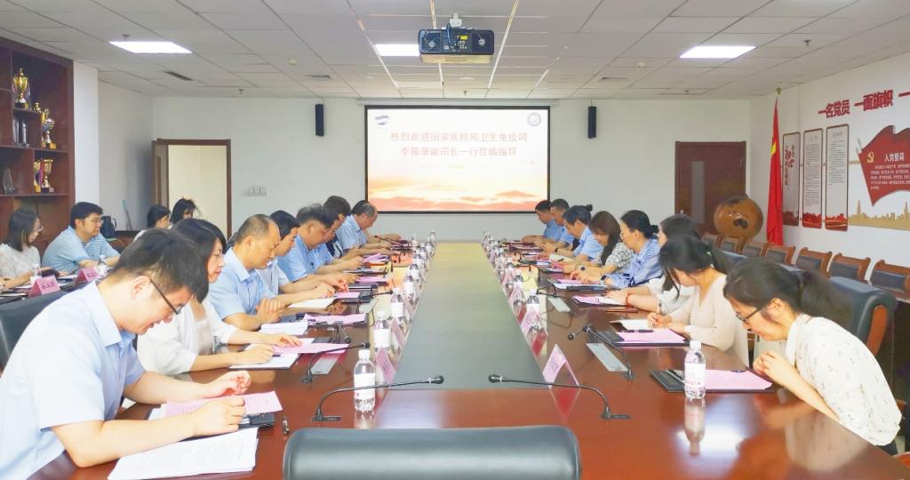 新闻网讯 7月6日下午,国家疾控局卫生免疫司副司长李筱翠、学校卫生(综合)处处长闫萍、中国疾控中心环境所所长王林、环境健康风险评估室主任李湉湉一行莅临伟德官网,就环境健康风险评估等公共卫生有关工作开展调研。山东省卫生健康委疾控处处长陈国锋、四级调研员刘淑丽,省疾控中心公共卫生监测评价所副所长杨绪廷,青岛市卫生健康委疾控处处长孙森、副处长张泉,市疾控中心副主任段海平等陪同调研。bevictor伟德官网副校长李荣贵出席座谈会,医学部相关负责人以及公共卫生学院党政领导班子成员、系主任等参加调研座谈会。