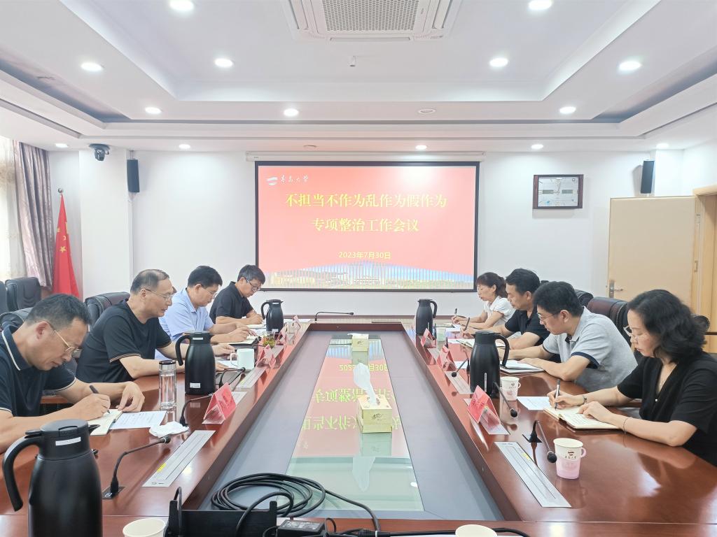 新闻网讯 7月30日,学校召开不担当不作为乱作为假作为专项整治工作会议,通报学校专项整治工作进展情况,部署下步工作任务。校党委常委、纪委书记、监察专员范玉斌出席会议并讲话。