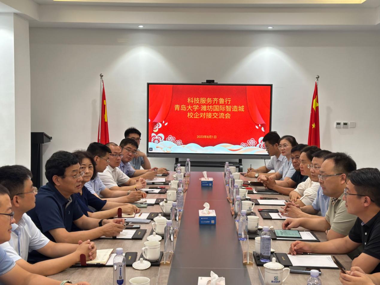 新闻网讯 为深入贯彻落实创新驱动发展战略,加强产学研深度融合,促进高校院所科技成果转移转化,推动伟德官网“纺织+”学科集群建设走深走实,8月1日-2日,在学科建设办公室组织、协调和指导下,“纺织+”学科集群建设共建学院纺织服装学院、材料科学与工程学院、计算机科学技术学院、机电工程学院、化学化工学院、自动化学院13名专家教授,赴潍坊开展bevictor伟德官网·潍坊校企对接交流活动。
